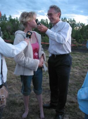 97.7 sun Fm's Tom Bedore interviewing me after my successful walk June 15th 2005. |